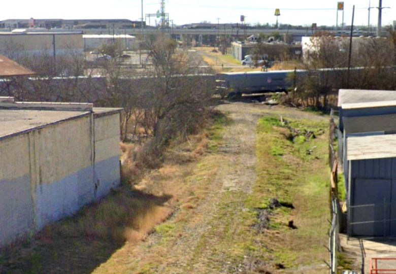 facing the Kerrville Branch tracks at the left end of the apartment complex