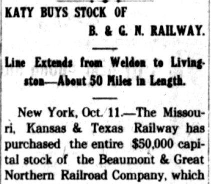 built in Texas. By this time, the Katy's ownership of the I&GN was public