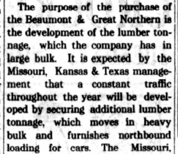 was a boon to commerce between Texas and the Midwest. Lumber interests wanted to