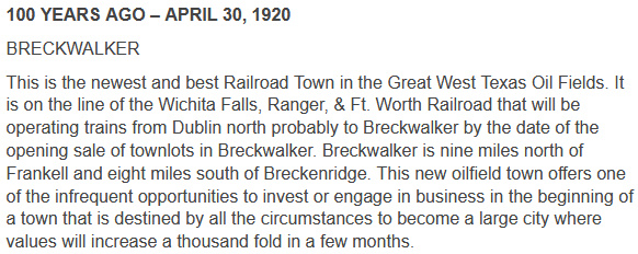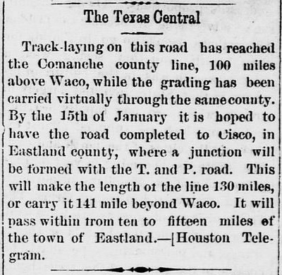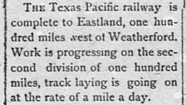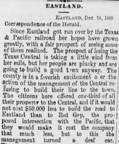 Eastland county". Never mind that Santa Fe track construction had yet to commence,