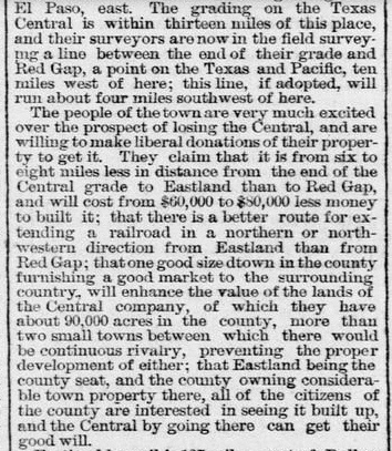 into west Texas. The Eastland county rail crossing was simply inevitable. Ultimately, there would be three