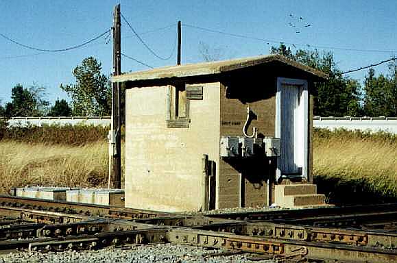 new cabinet that replaced the brick hut has override controls for the automatic interlocker mounted on the side (Mark St. Aubin, April, 2007.)