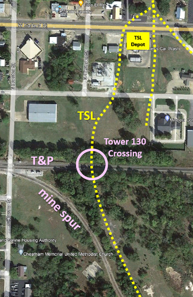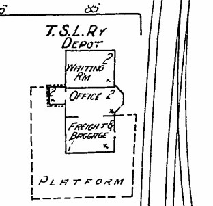 The TSL depot was located on the west side of the tracks immediately south of