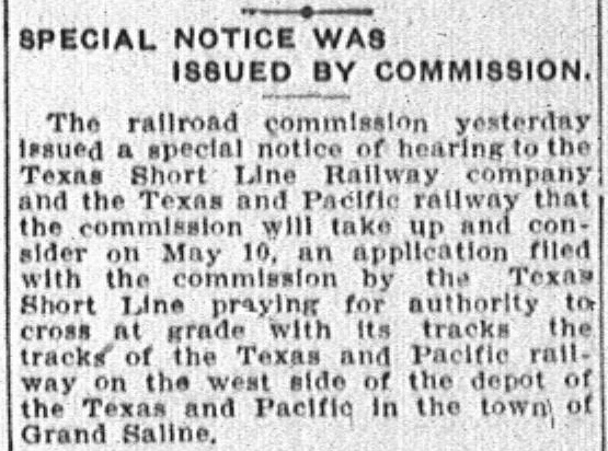 railroads near Grand Saline. Among all of these tracks, only the T&P tracks have