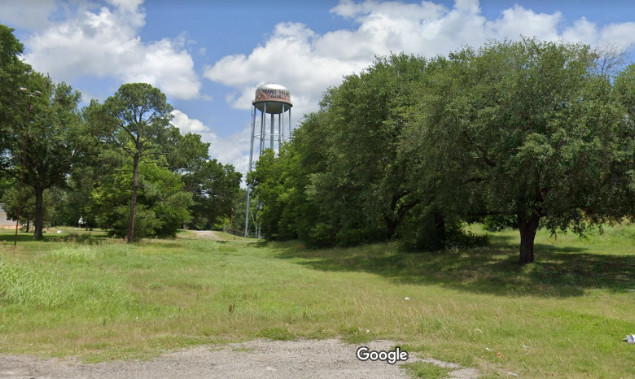 tracks from Alba entered Grand Saline. The water tower sits in the swale of the