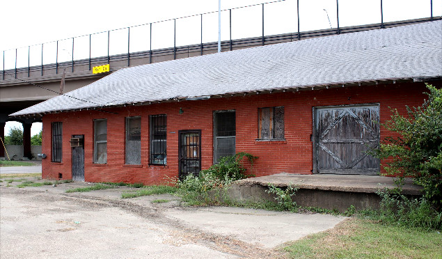 views of the abandoned TM freight depot in Terrell show that it now sits in the shadows of