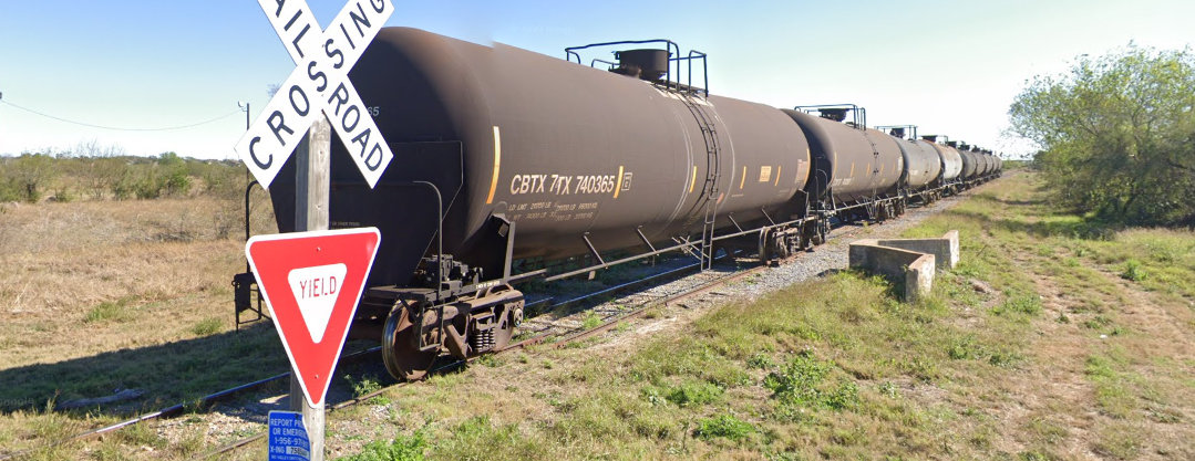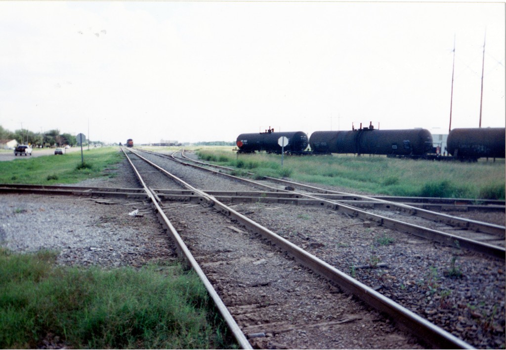 string of tanker cars occupies the track in the opposite direction west of Hand