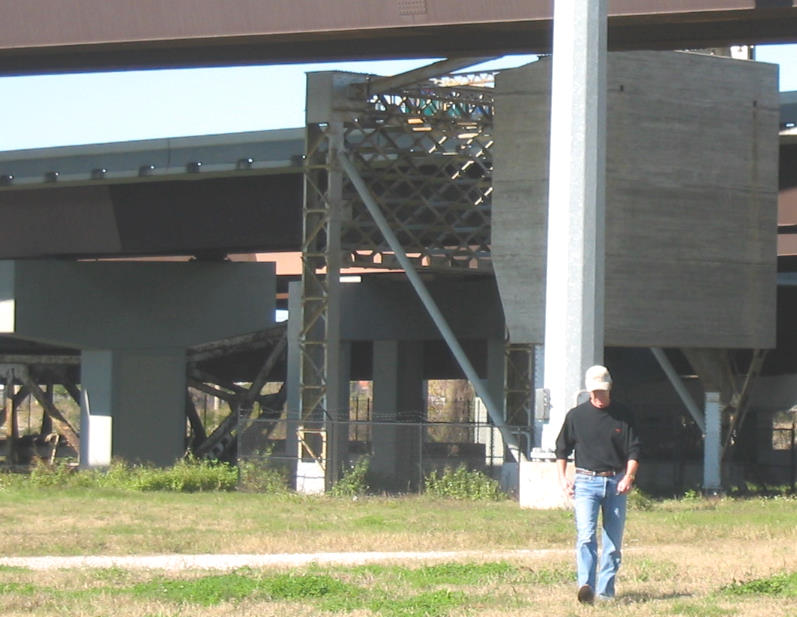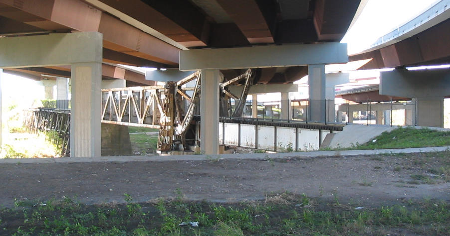 Note the minimal clearance between the top of the rotation arm for the bridge and the freeway overhead.