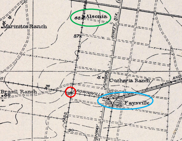 crossing (red) and Faysville (blue.) SP timetables from the 1930s list Alsonia