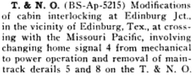 Missouri Pacific (MP) railroads near Edinburg. In the annual interlocker