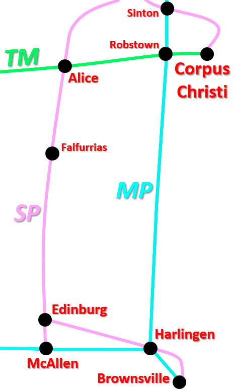 main line into the Valley from Falfurrias and began sharing MP's main line south