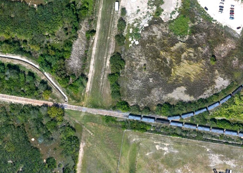the only evidence of the old line shows up, beyond the north end of Cantu Road,