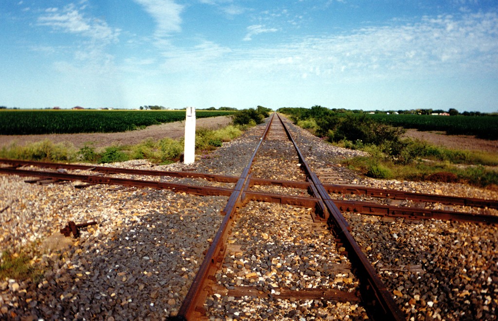 the MP tracks toward Rio Hondo. It shows MP's homemade stop sign with the SP line