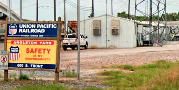 southwest connector in the distance are being pulled by a UP train into Angleton