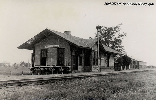 Blessing page at usgenwebsites.org show the MP and SP depots at Blessing.