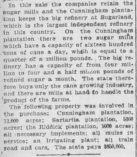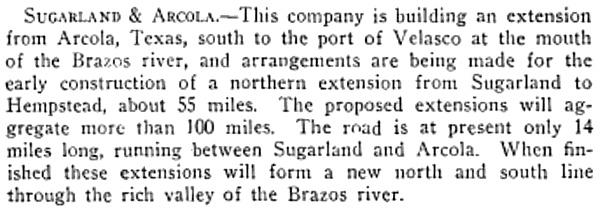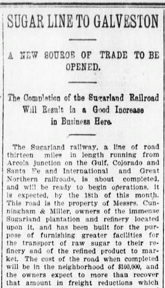 sugar enterprise, the Arcola Plantation, a dozen miles south of Sugar Land. To
