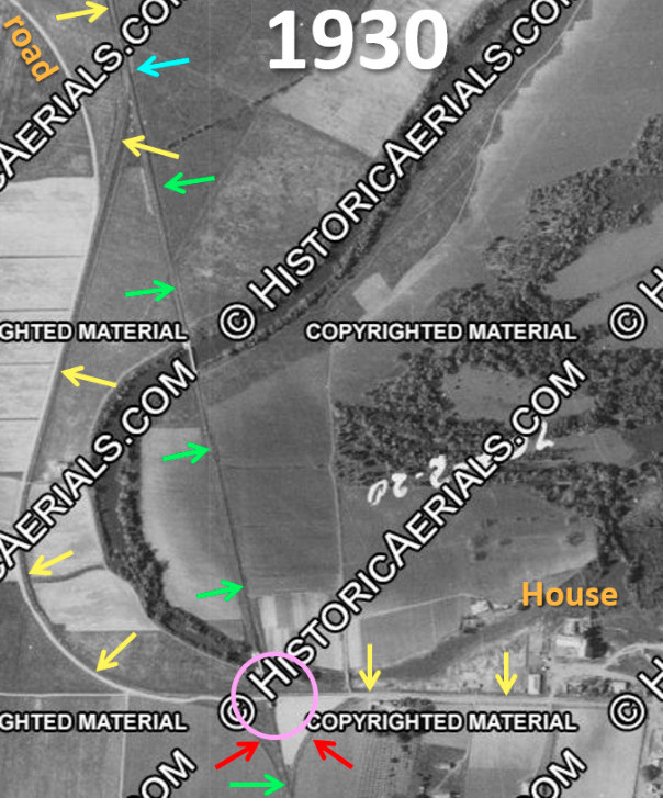 BNSF ROW (yellow arrows) and follows it west to Thompsons. Satellite imagery shows that by January, 2009, BNSF