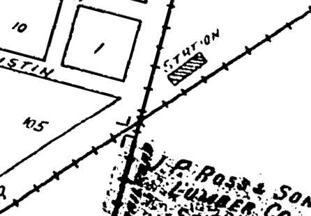 imagery from 1930 which instead shows the depot (photographs at top of page) sitting in the southeast quadrant. The 1939 Sanborn map labels