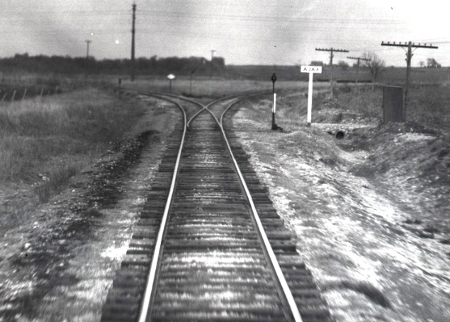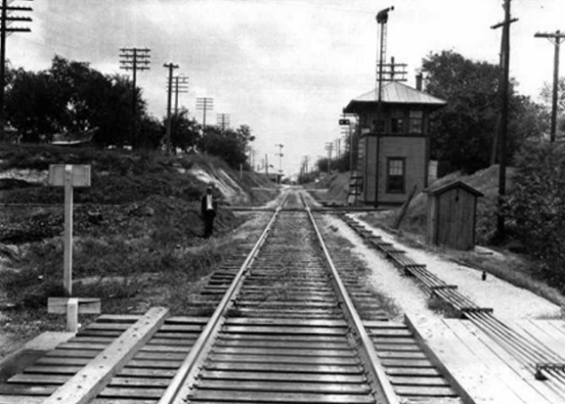 Railroad to San Antonio (to the left) and San Marcos (to the right). The white