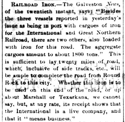 a new Texas railroad during the initial Reconstruction period after the Civil