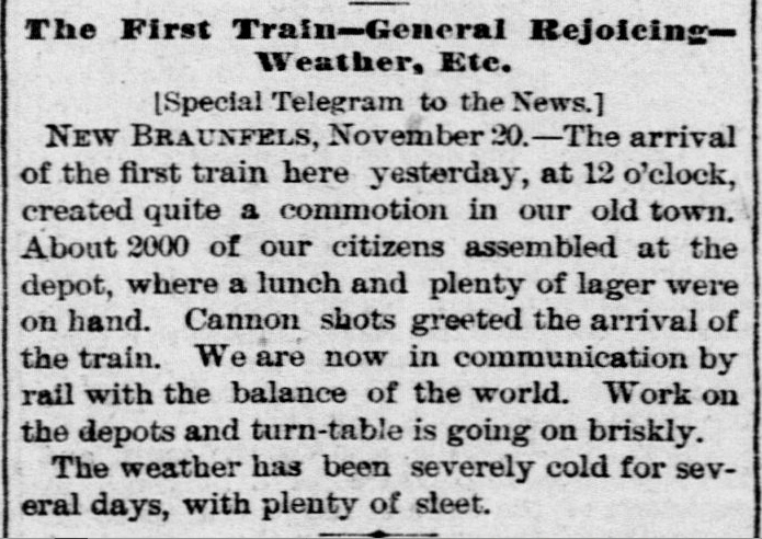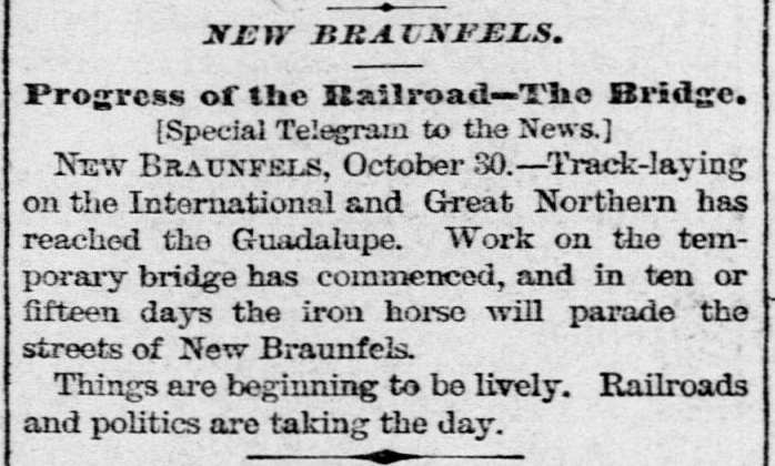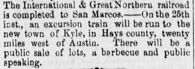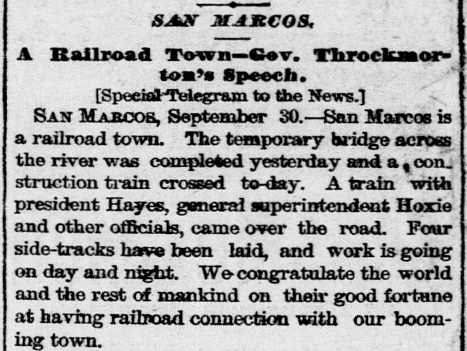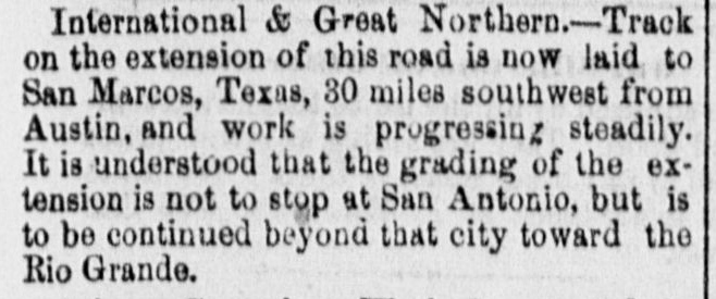 in Austin as his train was heading south toward San Marcos. Presumably this was