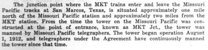 faces the "M.K.T. Junction" cabin at San Marcos where a connector to