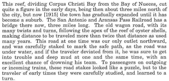 The trip went eighteen miles from Corpus Christi and returned. Additional grade