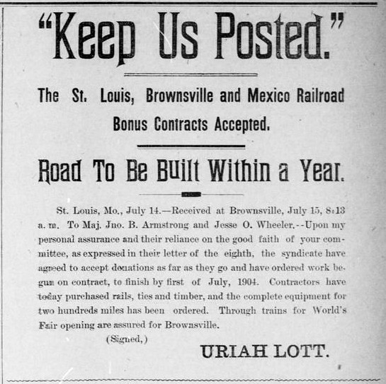 from the port to the major Mexican trade gateways on the Rio Grande River. Though the project took several