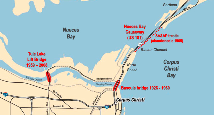 Bridge to UP's main line to Odem was built so that the Lift Bridge could be