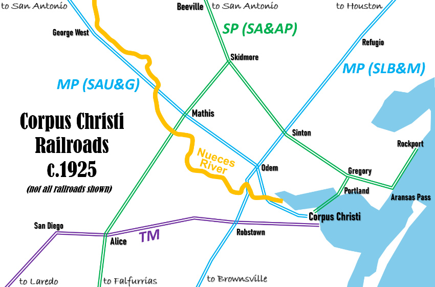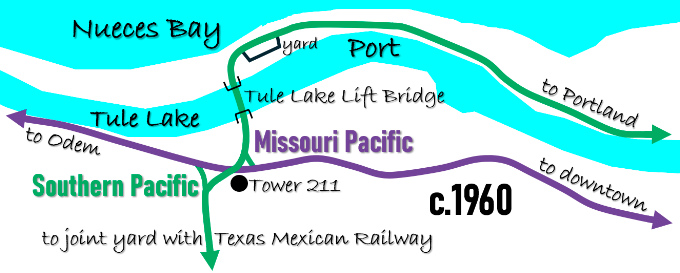 The Southern Pacific (SP) and Missouri Pacific main lines between Corpus