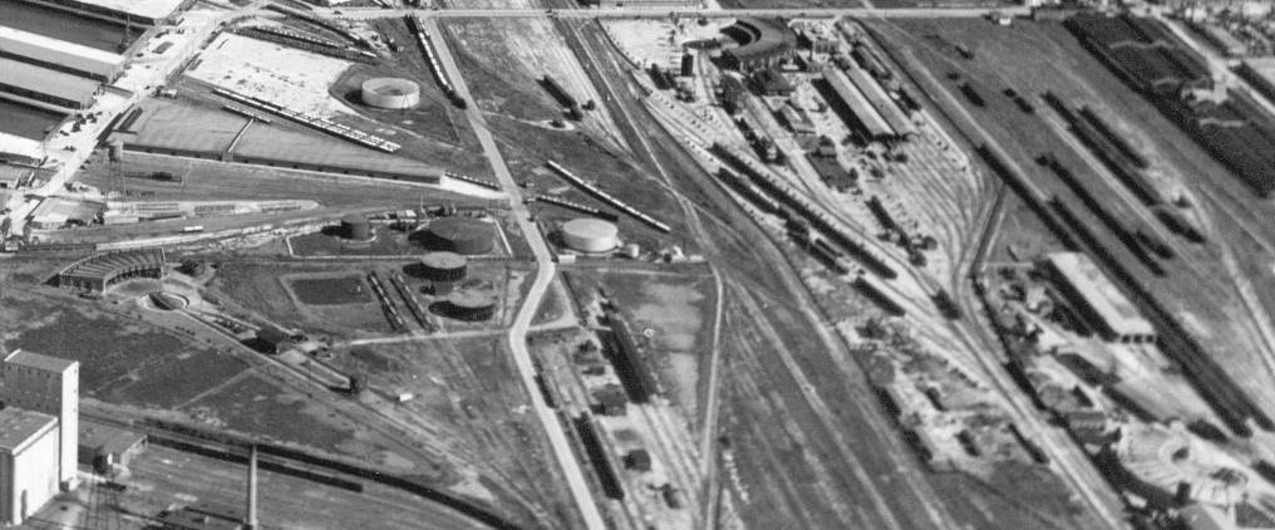 snippet taken from the larger image, the Santa Fe roundhouse is at the top edge,