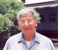 Society (courtesy William Osborn collection.)![]() Above: Frank Perez is a retired railroader who began his career with Santa Fe as an operator in Tower A in 1950. Frank tells of his first day on the job, having engineers whistling at him from all directions. He was so rattled that he started to bolt from the tower to head home when he heard the phone ring. He went back upstairs to answer it and it was his supervisor wanting to know why all those trains were whistling for signals! When Frank told him he didn't know what to do, the supervisor said to let one through at a time. Frank followed the instructions and had a successful career in the tower for many years. When Frank worked as a relief operator (1950 to 1958), Arthur Wade was first trick operator, H.E. Smith had second trick, and a Mr. Clifford was the third trick operator. Frank recalls that a signal maintainer named Boyd was killed when a train derailed and crushed him against a corner of the tower. Thanks to Frank for providing details about Tower A's operations. In retirement, Frank has supported the Galveston Railroad Museum as an electronics technician. Frank is sure that the person standing on the tower porch in the photo at left is H. E. Smith. Frank details that the interlocker levers were located in the middle of the room and were aligned parallel to the outside steps. |